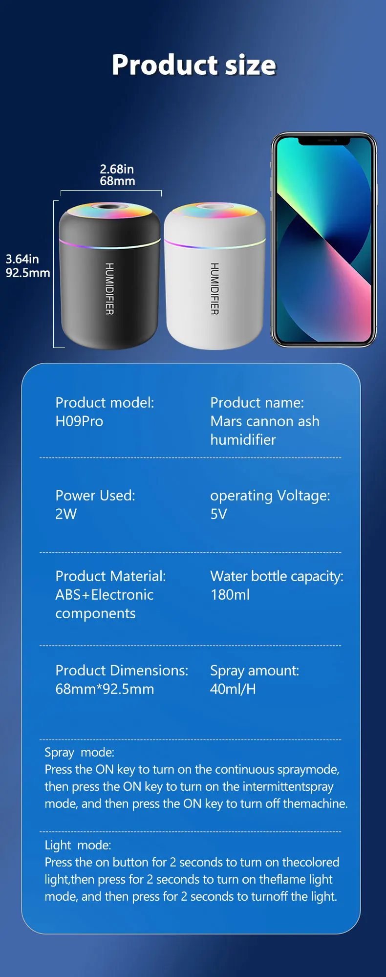 180ML Mini Air Humidifier USB Electric Aroma Diffuser Essential Oil Purifier Aromatherapy Mist Maker Lights For Car Home Bedroom