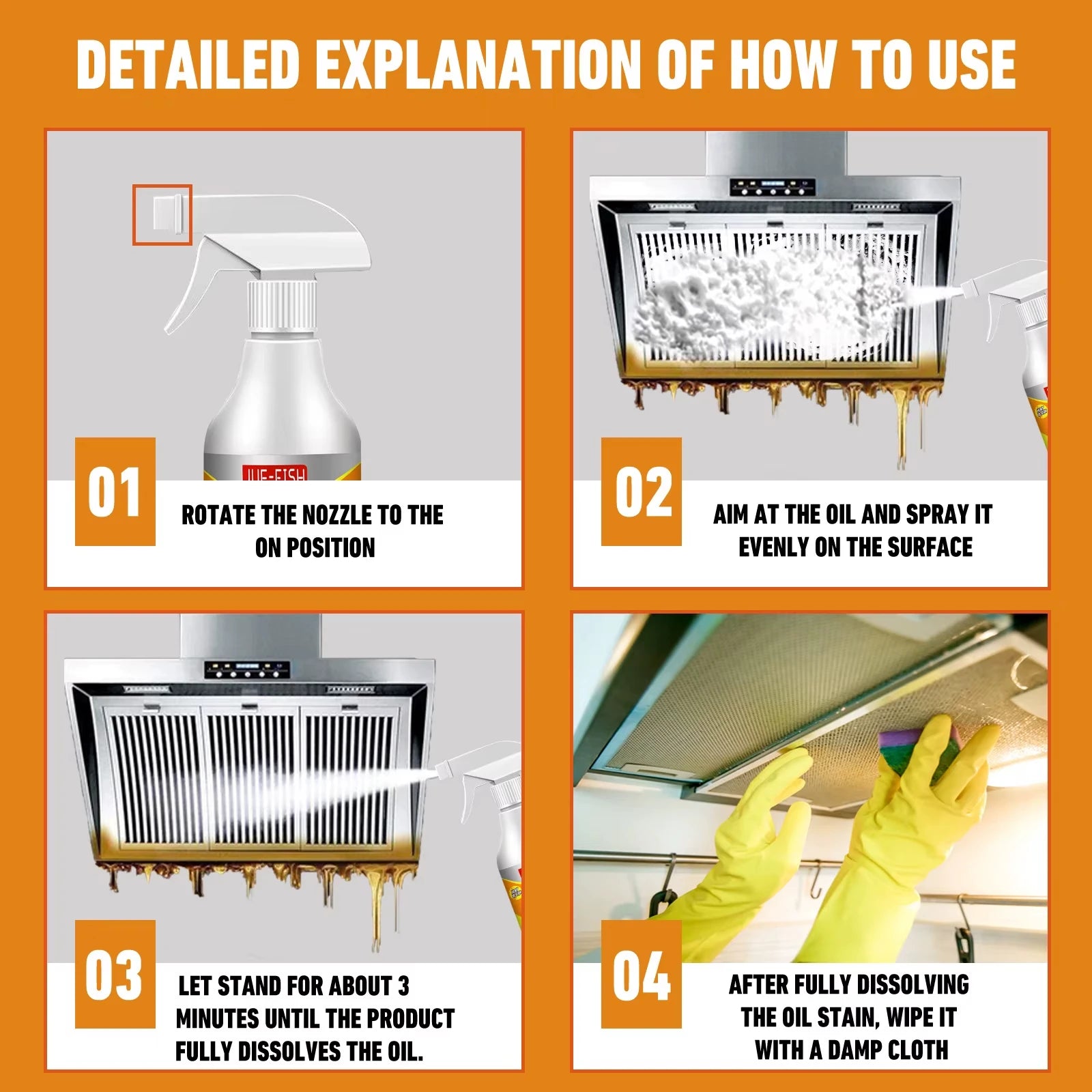 Multi-Purpose: Multi-Purpose Cleaning Spray, suitable for cleaning pots, stoves, pans, floors, sinks, faucets, tiles, kitchen fans, etc., making everything clean as new.